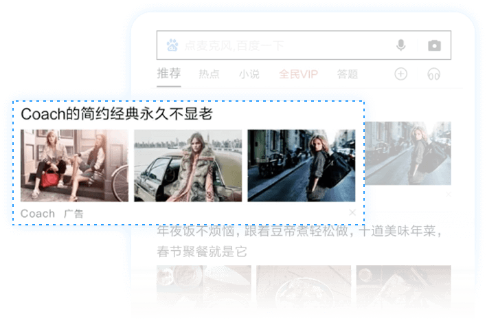 借助行業領先的百度搜索和資訊流推薦,把廣告展現給精準用戶